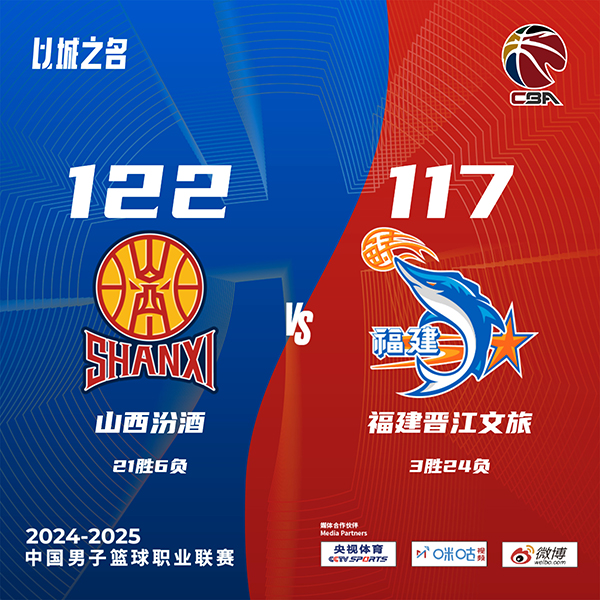 山西122-117逆转福建 张宁21+5 原帅末节11分 邹阳23+9