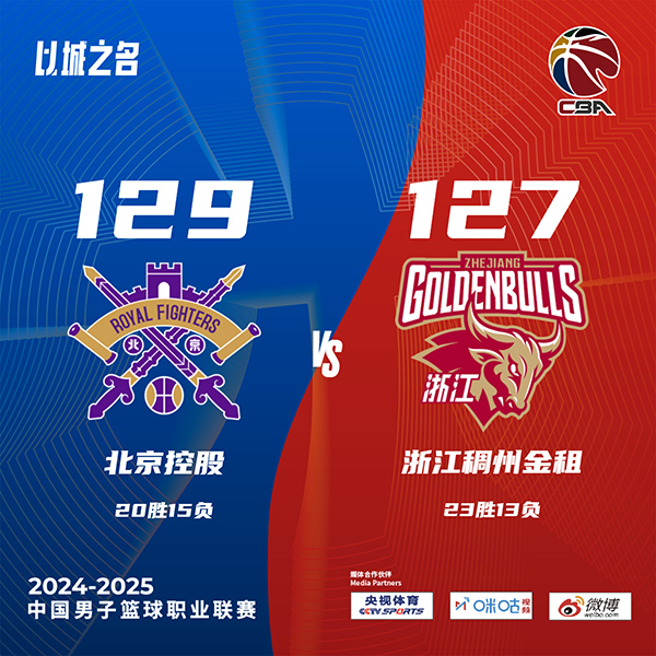 北控129-127险胜浙江 里勒46+8+8 约克48+10+11 余嘉豪25+24