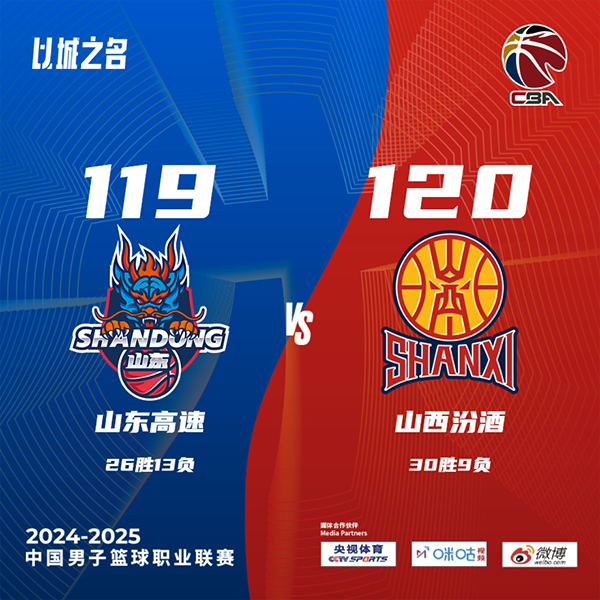 24直播网讯:北京时间3月13日晚,CBA常规赛第39轮继续进行,目前排名积分榜第6的山东男篮坐镇主场迎战第二名山西男篮。本场比赛两队激烈对攻,上半场双方交替领先,第三节张宁独得11分,山西男篮一度反超比分,末节摩尔独得22分帮助山东男篮再度领先,终场前贾明儒中投绝杀,山西男篮120-119力克山东男篮,迎来四连胜。