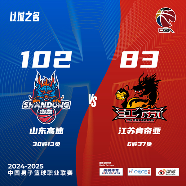 末节,山东高速继续保持领先,江苏肯帝亚在这一节里显得无从发力,未能创造反击的机会。值得一提的是,江苏肯帝亚的詹姆斯·汤普森在本节贡献了10分。最终,山东高速以102-83的比分赢得了比赛。