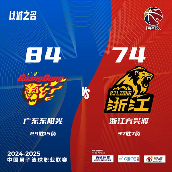 24直播网讯:北京时间3月24日消息,2024-25赛季CBA常规赛继续第44轮角逐。坐镇主场的广东男篮经过四节较量以84-74战胜浙江广厦男篮,取得2连胜;广厦队6连胜终结。