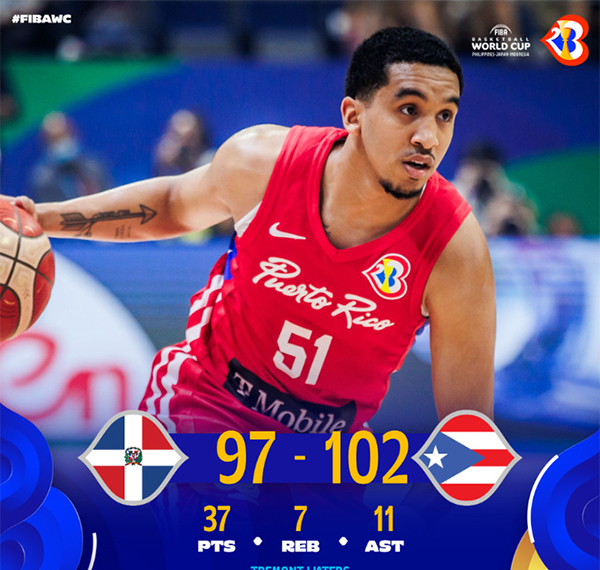 24直播网9月1日讯 男篮世界杯16强小组赛,多米尼加今日对阵波多黎各,前者小组赛三战全胜出线,后者则是两胜一负出线。比赛上来,波多黎各就率先进入状态取得领先,前半节的时间里多米尼加只拿到4分,当家球星唐斯在吃到技犯后被摁到替补席长达五分钟之久,次节波多黎各将分差拉开到了两位数,好在是多米尼加此后及时调整,连续的攻势后凭借着中场的压哨三分将比分追至45-45平;下半场回来多米尼加延续了火热的状态连拿六分取得领先,更是凭借着唐斯单节19分的表现拉开分差,末节顽强的波多黎各将比分追了回来,关键时刻波多黎各连拿五分杀死比赛,最终波多黎各险胜多米尼加。