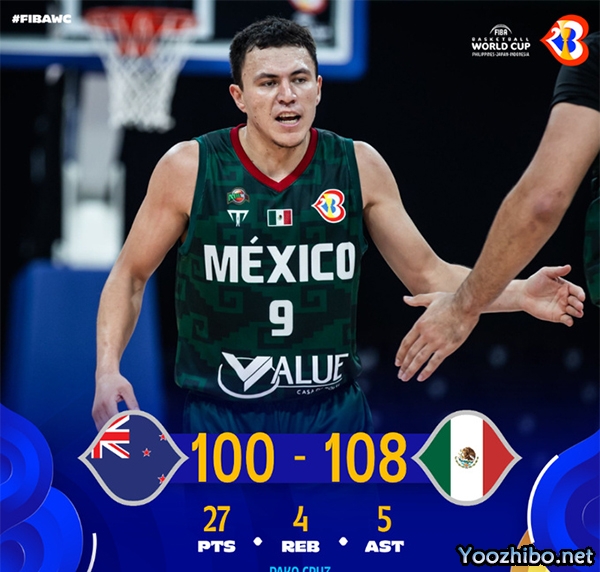 24直播网讯 北京时间8月31日讯 男篮世界杯排位赛,墨西哥男篮对阵新西兰。小组赛新西兰排在C组第三,墨西哥D组第四。一开场,双方势均力敌,比分交替领先,墨西哥内外开花持续发力打出9-0的攻击波取得两位数优势,新西兰连投带罚拿分顽强咬住。克鲁兹三分两连击,双方围绕10分分差展开拉锯战,克鲁兹压哨三分再中帮助墨西哥半场结束57-41领先新西兰。下半场,克鲁兹和勒阿法各自命中三分,墨西哥延续火力一度将优势扩大到19分,新西兰及时回暖连中三分完成11-0的攻击波缩小分差,墨西哥连投带罚稳住10分优势,兰奇连中三分续命,克鲁兹三分强势回应。最终,墨西哥力克新西兰,获得首场胜利。