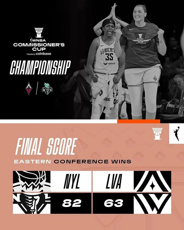 24直播网讯 08月16日讯 在刚刚结束的一场WNBA总统杯的决赛中,纽约自由人82-63战胜拉斯维加斯王牌夺冠。本场比赛,中国球员韩旭进入到球队的大名单中,但并没有上场。这也是她WNBA生涯的首个冠军。