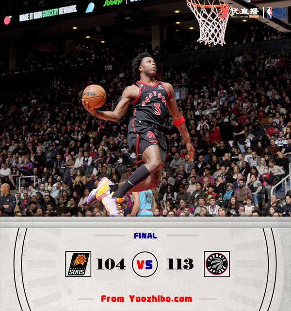 24直播网12月31日讯 NBA常规赛,太阳客场挑战猛龙。太阳目前西部第六,猛龙在东部倒数第五。布克和范弗里特都不打。上半场,开场阶段双方势均力敌,比分咬得很紧,猛龙持续发力打出12-3取得领先,太阳内外开花回敬13-2反超比分,猛龙连中三分,半场战罢猛龙53-51领先2分。下半场,猛龙占得先机打成13-4的攻势取得两位数领先,保罗得分助攻一肩挑带队追赶,末节双方争夺陷入白热化,关键时刻猛龙内外开花连续拿分锁定胜局。