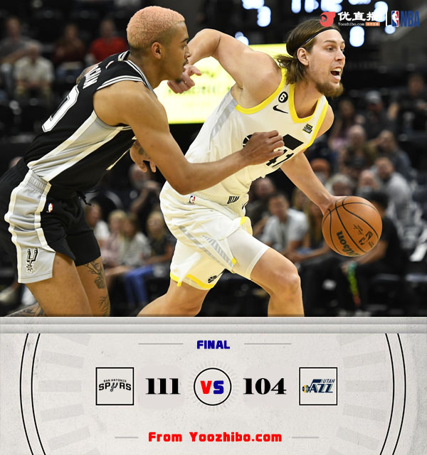 24直播网讯:10月12日讯 NBA季前赛继续进行,爵士主场迎战马刺,双方休赛期都迎来大规模的人员变动开始重建,而马刺此前3场季前赛未尝胜绩,爵士则是取得1胜1负的战绩。开局爵士通过外线不错的手感率先建立领先,但瓦塞尔联手凯尔登突破加中投接连打出小高潮直接反超并建立双位数领先,次节爵士进攻端还是没有调整好,接连失误让马刺抓住机会继续拉大分差,瓦塞尔和凯尔登继续保持火热进攻状态。第三节,马刺进攻端继续施压直接将分差拉开至20分以上,爵士没有什么好办法,随后双方围绕20分左右分差展开拉锯战,末节爵士替补们接连冲击内线打出13-2的进攻波一举追到个位数分差,但马刺马上依靠外线三分稳住领先优势,最终马刺力克爵士,终止3连败。