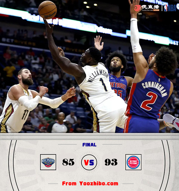 24直播网10月8日讯 NBA季前赛继续进行,鹈鹕对阵活塞。鹈鹕迎回了更加精壮的锡安,新赛季值得期待。活塞这边休赛期引进多位实力派强援,康宁汉姆也得到了迅速成长。英格拉姆和麦科勒姆本场比赛不会出战。一开场,活塞率先发力连续打出进攻高潮取得领先,鹈鹕回敬10-0的攻势在首节结束时反超1分。次节上来,两队大打对攻,鹈鹕持续发力内外开花,以59-51领先进入下半场。易边再战,锡安连得6分带队取得两位数优势,活塞奋力反击连中三分一度追赶,鹈鹕一波6-0带着6分优势结束第三节。最后一节,双方继续缠斗,鹈鹕始终保持微弱领先,康宁汉姆得分助攻一肩挑带队追赶,西布龙关键上篮得手,最终,鹈鹕险胜活塞,取得胜利。