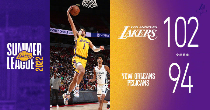 24直播网讯7月16日讯 NBA拉斯维加斯夏季联赛继续进行,湖人对阵鹈鹕,湖人新秀中看点有两位名宿之子,小皮蓬和小奥尼尔,还有35号秀克里斯蒂;而鹈鹕8号秀丹尼尔斯还没有亮相。湖人上来先打出不错开局,但鹈鹕也能凭借中投手感咬住比分,佩蒂接连扔进三分连砍8分帮助鹈鹕取得领先,次节鹈鹕进攻端显得无章可言,而湖人外线则是火力全开,以斯维德为首的射手群接连下起三分雨,湖人也连续打出小高潮反超了8分。第三节,斯维德继续保持上半场的火热手感里突外投帮助湖人将分差拉开至双位数,鹈鹕多次缩小分差,湖人依靠外线三分总能回应,末节湖人换上替补练兵,但外线手感能保持住,分差保持在10分左右,最终湖人力克鹈鹕。