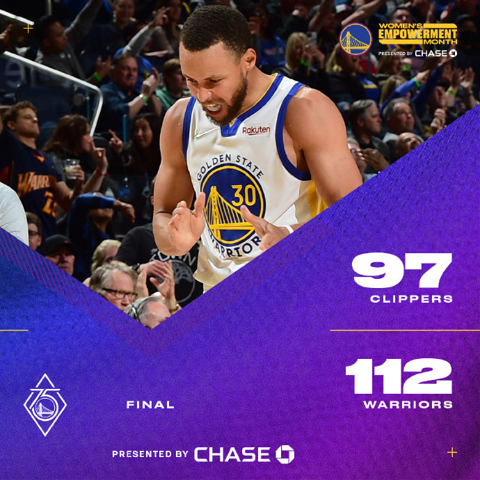 24直播网3月9日讯 勇士今日坐镇主场迎来快船的挑战,勇士上一场大面积轮休后不敌掘金遭遇5连败,目前排名也下降至西部第三,快船则在上一场不敌尼克斯结束5连胜。首节之争勇士前半节表现非常糟糕,前4分钟里仅得4分导致开局被动,不过快船虽然以一波7-2的攻势占据上风,奈何随后也跟着对手节奏不断打铁,勇士在喘息过后及时回暖追上比分,次节勇士开始接管比赛,多点开花的他们先是一波8-0,随后又是一波14-0,这两波进攻帮助勇士取得18分优势进入下半场。第三节争夺勇士彻底接管比赛,以克莱和普尔为首,勇士这一节再胜7分并取得25分的领先,末节快船虽然回暖轰出一波22-8的攻势,但此时分差还有15分之多,而时间又所剩不多无力制造威胁。最终,勇士主场复仇快船,同时结束5连败。