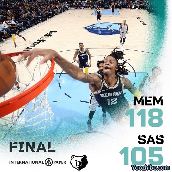 24直播网 3月1日讯 NBA常规赛,灰熊主场对阵马刺。灰熊第一节就轰下42分,在莫兰特的带领下逐渐扩大领先优势,最终在主场击败马刺,取得两连胜。