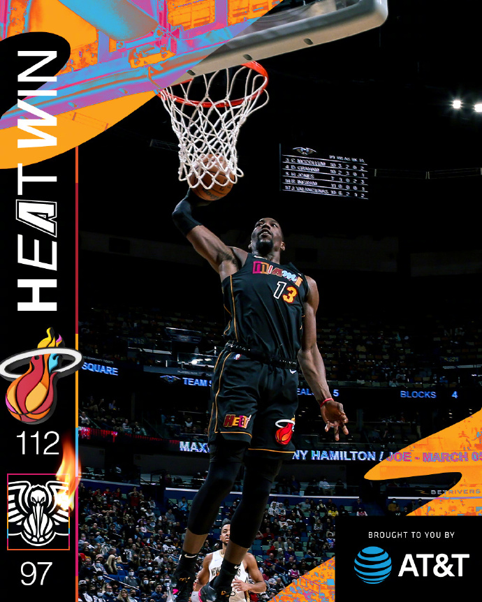 热火(36-20):阿德巴约29分10板3断,巴特勒29分8板3助3断,洛瑞14分11板11助4断,邓罗10分2助,塔克3分3板2助,文森特6分4助,斯特鲁斯7分2助,戴德蒙11分7板,尤特赛文3分2板