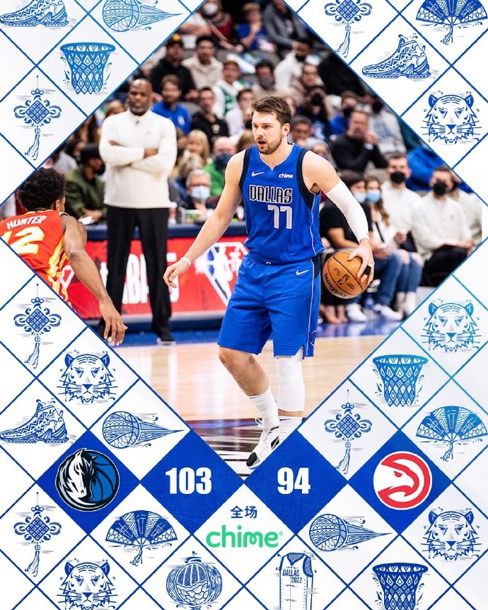 独行侠(31-23):布伦森22分5篮板5助攻,东契奇18分10篮板11助攻,布洛克22分9篮板,芬尼-史密斯11分4篮板2助攻,鲍威尔12分7篮板3助攻2帽,约什-格林9分6篮板3断1帽,伯克7分2篮板,克里斯2分5篮板