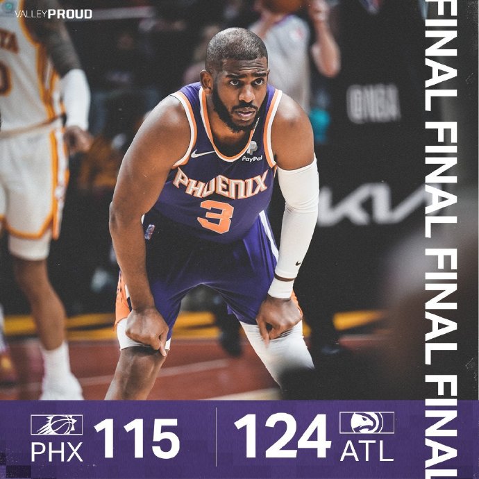 老鹰(25-26):特雷-杨43分5助攻1抢断、科林斯19分10篮板、许尔特19分3篮板3助攻、亨特13分、加里纳利12分6篮板3助攻、博格达诺维奇11分6助攻、卡佩拉6分12篮板4助攻、奥孔武1分4篮板
