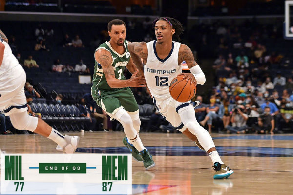 24直播网10月6日讯 NBA季前赛,卫冕冠军雄鹿客场迎战灰熊,雄鹿字母哥、米德尔顿和霍勒迪三巨头此役均高挂免战牌。首节灰熊在莫兰特的带领下火力全开,开局一波11-0后便牢牢占据场上主动,次节雄鹿有所复苏,大洛和诺瓦一内一外保住了球队的基本盘,灰熊除了莫兰特外手感均有所下降,好在之前领先较多,他们也带着8分的优势结束上半场。下半场阿伦连得8分一度帮助雄鹿追至只差2分,无奈莫兰特个人能力太过突出,他单节奉献3记暴扣,配合上梅尔顿与杰克逊的出色发挥,灰熊重新稳住阵脚,末节由于现场球馆报警器的问题,比赛临时取消。