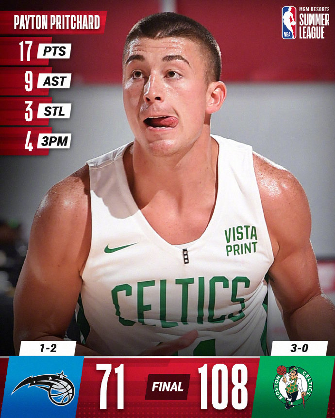 24直播网8月13日讯 NBA夏季联赛魔术对阵凯尔特人,开场后两支球队手感都不太理想,凯尔特人首先打开局面建立领先,第二节凯尔特人依旧保持稳定的发挥将分差拉大到两位数,特别是在半场结束前由爱德华兹、内史密斯和普理查德三人打出的攻势让绿军在半场结束时以50-31领先19分。下半场魔术表现依旧不太理想,萨格斯手腕酸痛没有再登场,凯尔特人不断拉大分差,最终凯尔特人108-71轻松战胜魔术。
