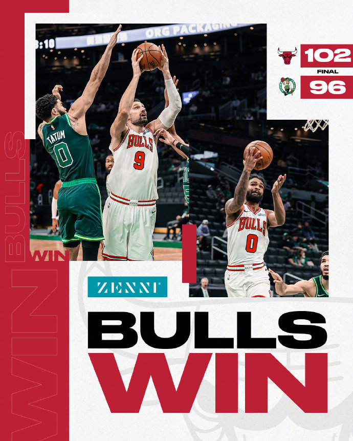 24直播网4月20日讯 NBA常规赛,凯尔特人坐镇主场迎战公牛。在和库里的飙分大战中带队赢球后,塔图姆已经率领凯尔特人取得了一波六连胜,排名也是上升到了东部第五。而公牛近况不佳,击败骑士后刚刚结束自己的五连败,目前是排在东部倒数第五。本场比赛公牛拉文及凯尔特人斯玛特、沃克、富尼耶均不会出战。一开场,凯尔特人坐拥主场之利开局9-0,公牛及时找回状态连续三分命中缩小分差,首节打完凯尔特人领先6分。次节比赛,两队命中率都出现下降,凯尔特人率先发力一度拉开两位数分差,武切维奇依靠个人能力连续拿分,凯尔特人48-42领先6分进入下半场。易边再战,公牛持续发力,科比-怀特单节拿到10分帮助公牛反超8分结束第三节。末节争夺,凯尔特人连续三分命中一度扳平比分,但连续出现3次失误,科比-怀特关键时刻四罚全中杀死比赛。最终,公牛客场爆冷击败凯尔特人,终结了对手的六连胜。