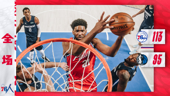 24直播网4月13日讯 今日NBA常规赛,独行侠主场迎战76人,波尔津吉斯因伤缺战。比赛开始后,双方外线手感都很不错,接连都有三分入账,之后恩比德内线发力连得8分替76人取得领先,首节结束,76人30-24领先独行侠4分。次节开始,独行侠进攻效率降低,76人抓住机会接连打出进攻小高潮,恩比德持续发力肆虐独行侠内线,76人一度将分差扩大至15分。易边再战,恩比德依旧保持无解,内外兼修独得9分替76人扩大领先优势,东契奇里突外投艰难得分,随着丹尼-格林连续命中两记三分,双方分差一度来到20分。最后一节,76人主力均未上场,开节打出8-0进攻高潮不断将分差扩大,独行侠多次尝试反扑无果,最终76人客场113-95大胜独行侠。