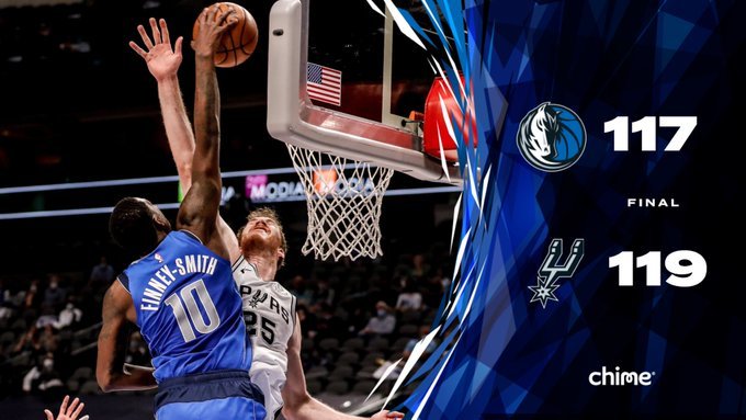 24直播网4月12日讯 独行侠今日坐镇主场迎战马刺,独行侠凭借近期7场比赛赢下6场稳住第七的排名,原本排名高于独行侠的马刺却在一波5连败之中跌出了西部前八。首节争夺马刺状态出色抢先机并取得领先,不过独行侠方面依靠波尔津吉斯首节独砍13分5篮板的发挥及时止血并在节末追平比分,次节对决独行侠在拉锯战中再一次突围,节末多点开花的独行侠用一波15-3的进攻高潮取得领先并带着5分优势进入下半场。下半场争夺马刺抢到两节比赛的开局,第三节节初一波13-4的攻势帮助他们反超比分,第四节开局他们再送11-2的攻势拉开比分,独行侠为两次糟糕的开局买单,不过两次他们都在最后时刻上演追分大戏,末节凭借东契奇连投带罚拿下4分独行侠抹平比分,奈何一整场都表现出色的德罗赞又一次取得进球,他的致命跳投帮助马刺上演绝杀。最终,马刺客场绝杀独行侠结束5连败。