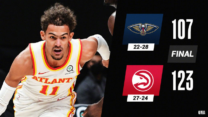 老鹰(27-24):特雷-杨30分12助攻,卡佩拉12分12篮板3帽,博格达诺维奇21分4篮板4助攻,所罗门-希尔5分9篮板3助攻2断,许尔特17分3篮板2助攻,加里纳利14分,内森-奈特2分,奥孔武7分3篮板2帽,斯内尔3分4篮板,路威12分3篮板2助攻2断