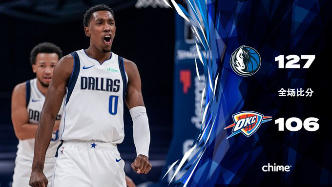 独行侠(24-21):东契奇25分3篮板7助攻,波尔津吉斯20分9篮板5助攻2封盖,芬尼-史密斯12分2助攻,理查德森9分3篮板5助攻,克莱伯6分8篮板2助攻,哈达威19分3篮板,布伦森9分2篮板7助攻,鲍威尔7分6篮板。