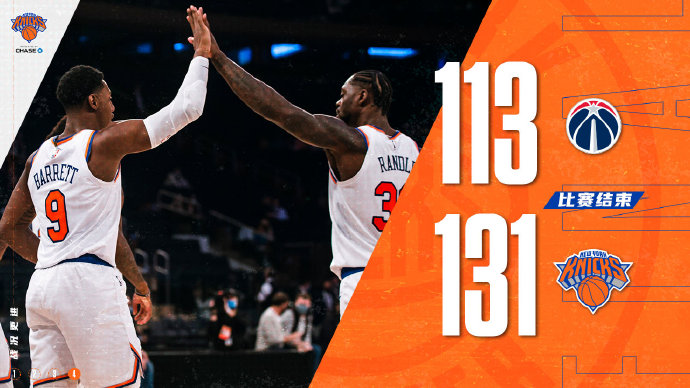 尼克斯(22-22):兰德尔37分6板2助,巴雷特21分5板5助2帽,罗宾逊16分12板3帽,伯克斯20分3板3助,奎克利14分,布洛克10分2板3助,诺埃尔6分5板3助,佩顿7分5板4助;