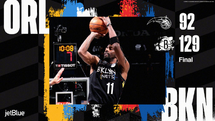 24直播网2月26日讯 NBA常规赛,最近状态正佳的篮网带着七连胜的好成绩主场迎来魔术的挑战,后者上一场不敌活塞暂列东部第十二,而前者则是雄居东部第二,本场比赛戈登、杜兰特继续缺阵。开局阶段,篮网手感冰凉半节时间只得3分,调整过后魔术找到三分手感连续射进,最后一分钟欧文率领追上6分,首节结束魔术领先4分。次节风云突变,篮网在经历开局的低潮后哈登找到手感连续投进三分,武切维奇也是状态很好内外开花,但双拳难敌四手,篮网凭借单节41分的进攻表演半场结束反超18分。易边再战,魔术恩尼斯站了出来连得11分追近分差,但欧文马上带领篮网回应一个7-0小高潮,三节结束篮网依然领先20分。末节上来篮网打出8-0直接带走比赛,魔术依靠武切维奇自己无法抵抗,后半节时间为练兵时间,最终篮网狂胜魔术37分,豪取八连胜。