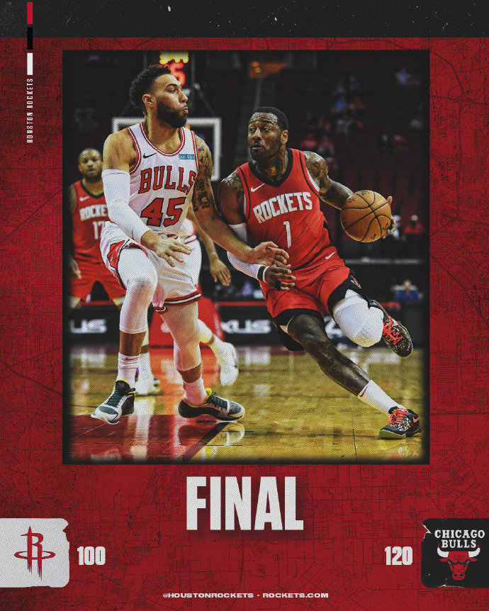 24直播网2月23日讯 NBA常规赛,火箭主场对阵公牛,火箭近期日子可不好过,七连败后排名掉落至西部倒数第二,公牛上场战胜国王排名东部第九,本场比赛考辛斯缺阵,奥拉迪波依然不打。首节上来,双方进入状态都很早,互相命中三分,中段公牛通过7-0小高潮在首节结束时确立5分的领先优势,次节火箭一度依靠三分反超比分,拉文回来后连续命中干拔,带领公牛守住优势且半场结束依然领先6分。易边再战,拉文带领着公牛三分手感全开,连续的进攻高潮火箭根本抵挡不住,三节结束公牛领先优势扩大到26分。末节公牛两个回应三分直接阻断火箭的追分势头,比赛也是随之失去悬念,双方换上替补成为练兵时间,最终公牛大胜火箭,送给对手8连败。