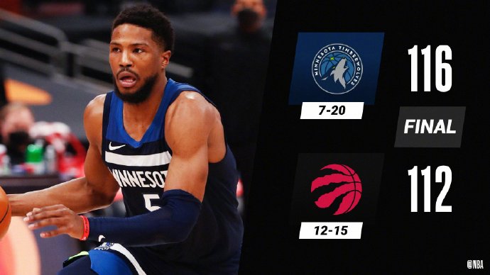 森林狼(7-20):比斯利20分6助攻,唐斯20分11篮板,卢比奥16分5助攻,爱德华兹18分7篮板,范德比尔特12分7篮板,诺威尔11分,埃尔南戈麦斯5分。