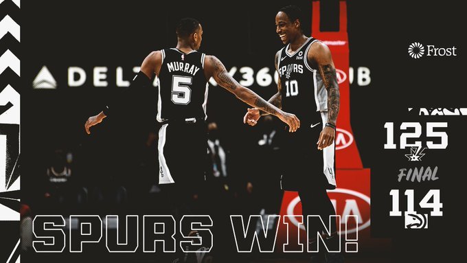 24直播网2月13日讯 开启七连客牛仔之旅的马刺第一站来到了亚特兰大挑战老鹰。阿尔德里奇的继续缺阵,让本就捉襟见肘的马刺内线轮转雪上加霜,老鹰方面,隆多&博格达&亨特&邓恩的多人缺席则使球队后场实力大打折扣。比赛开局马刺率先进入比赛状态,状态火热的德罗赞连续打中单节14分,率领马刺占据主动,特雷-杨也独得17分给予回应,次节马刺一波41-19的进攻高潮彻底奠定领先优势,半场轰下赛季新高的77分,而老鹰在进攻端的断电,也带着29分的落后进入中场休息。第三节开场约翰逊连得10分,分差被拉开到了39分,溃不成军的老鹰只能通过卡佩拉的篮下捡漏勉强得分,而巨大的分差也使本场比赛早早失去了悬念,最终马刺在牛仔之旅的第一场比赛中,以125-114大胜老鹰,避免连败。