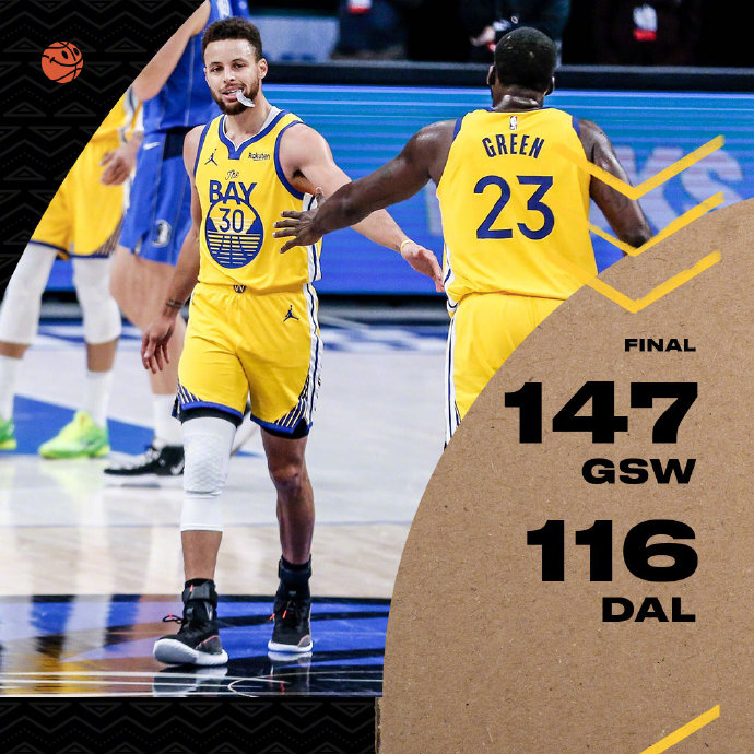 24直播网2月5日讯 NBA常规赛独行侠主场对阵勇士,开场后东契奇接连拿分帮助独行侠取得领先,不过勇士多点开花将比分反超,勇士外线手感不错连中三分,不过独行侠迅速调整咬住比分,第二节上来独行侠就打出8-0完成反超,此后东契奇再次发挥帮助独行侠取得领先,上半场独行侠76-74领先。下半场回来波尔津吉斯手感火热连中三分,乌布雷也是状态神勇接连砍分,在第三节后半段勇士打出攻势建立起两位数优势,第四节勇士更是一鼓作气将分差拉大到20分开外,独行侠无力追分,最终勇士147-116大胜独行侠避免连败。