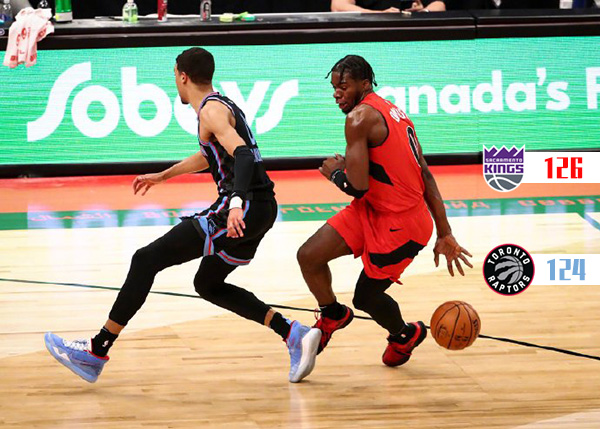 24直播网1月30日讯 猛龙今日坐镇主场迎来和国王的常规赛较量,首节比赛猛龙仅和对手打了半节的时间便败下阵来,国王抓住猛龙后半节哑火的机会打出21-10的攻势一举确立起12分的领先,次节猛龙找回状态但没能阻止对手的进攻,这一节猛龙虽然轰下34分但也仅仅追回2分,半节结束时猛龙仍然落后10分。下半场的猛龙打的非常被动一直落后着两位数的劣势,不过末节节中国王自己的哑火自毁长城,猛龙用一波17-5的攻势将分差缩小至1分看到希望,不过最后时刻怀特塞德抢下价值千金的进攻篮板,而哈利伯顿不负众望命中致命三分奠定胜局。最终,国王险胜猛龙迎来3连胜,猛龙则遭遇3连败。
