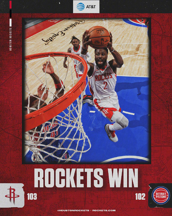 24直播网1月23日讯 火箭前往客场挑战活塞,此役沃尔和伍德因伤缺阵。首节火箭迅速找到手感,考辛斯、塔克和泰特等连中三分,帮助火箭建立起两位数领先。不过,活塞之后进入状态,格兰特、艾灵顿等里外开花连续砍分,率领活塞在第三节成功反超比分。末节活塞未能延续手感突然哑火,火箭趁机重新夺回领先。比赛最后,格兰特连续砍分率领活塞追分争取绝杀机会,可惜最后一攻突破上篮超时无效。最终,7人上双的火箭以103-102惊险获胜,止住3连败颓势。