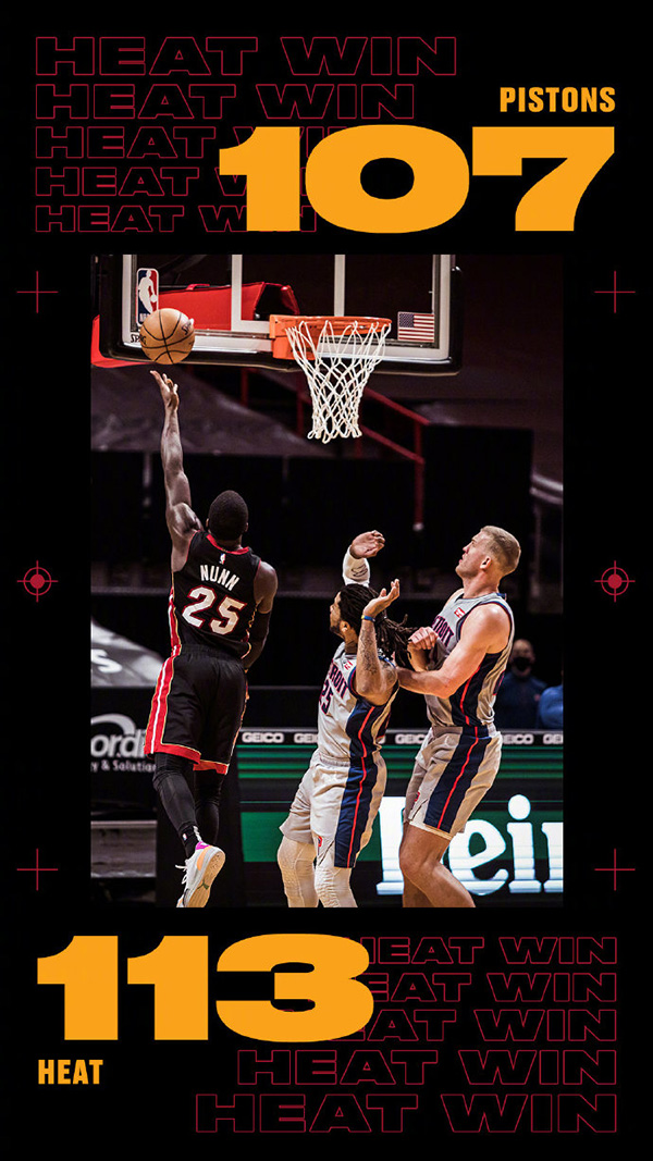 24直播网1月19日讯 热火主场迎战活塞的比赛推迟至9:00进行,首节活塞一波流一举将比分拉开到20分,第二节热火稍稍将追回比分以落后6分进入下半场,第三节热火打出一波流将比分反超,末节两队进入拉锯状态,但热火笑到最后力克对手,自己也制住了 三连败。