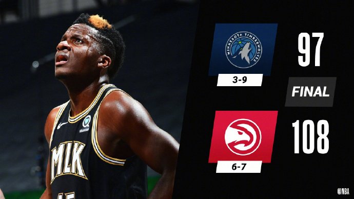 24直播网1月19日讯 NBA常规赛老鹰主场对阵森林狼,老鹰最近遭遇2连败,森林狼则是在西部垫底。开场后两队进入状态都比较慢,老鹰率先打出攻势取得领先,不过森林狼咬住比分。第二节在特雷-杨带领下老鹰一度将分差拉大到两位数,不过森林狼外线连中三分又缩小分差,上半场老鹰58-51领先。下半场刚上来森林狼就打出攻势追平比分,不过老鹰依靠科林斯和亨特的发挥建立起两位数优势,森林狼森林狼进攻不力,但老鹰也失误频频,特雷-杨受到犯规困扰只得多次下场休息,最后一节老鹰守住领先,森林狼未能翻盘,最终老鹰108-97击败森林狼结束2连败。