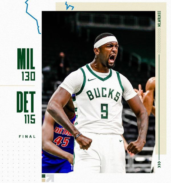 雄鹿(5-3):阿德托昆博25分8篮板4助攻,米德尔顿23分5篮板7助攻,霍勒迪10分5篮板6助攻,波蒂斯16分11篮板4助攻,沃拉11分4篮板,奥古斯丁8分4篮板6助攻,福布斯8分。