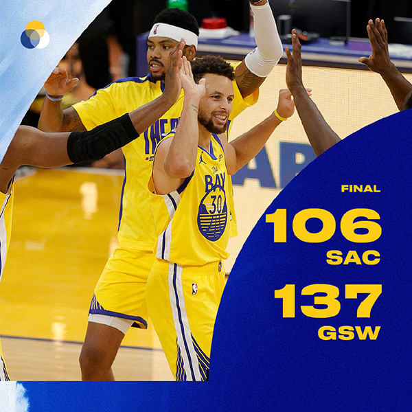 24直播网1月5日讯 NBA常规赛,勇士今日迎战国王,前者上场比赛凭借着库里生涯新高的62分战胜了开拓者,目前排在西部第六位,而后者已经遭遇两连败,暂列西部第八位。比赛上来勇士延续了上场比赛的良好势头,一波8-0的完美开局取得领先,分差也逐渐拉大到两位数,次节国王依旧没能找到限制勇士的办法,半场结束时场上分差已经达到二十分。易边再战,勇士牢牢掌握着场上的大比分领先优势,比赛过早地就失去了悬念,最终勇士大胜国王,送给后者三连败。