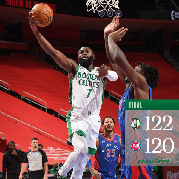 24直播网1月4日讯 NBA常规赛,活塞今日主场迎战凯尔特人,两队前天刚刚交手一次,活塞最终险胜拿到了本赛季的第一场胜利,本场凯尔特人势必寻求复仇。比赛上来两队便陷入拉锯战,场上比分交替领先,次节中后段凭借着布朗的出色发挥,凯尔特人在半场结束时取得4分的领先。易边再战,双方依旧保持胶着,都没有获得拉开分差的机会,比赛悬念保持到了最后,关键时刻塔图姆罚球线命中准绝杀,随后又封盖下格里芬的绝杀三分,最终凯尔特人险胜活塞,实现复仇。