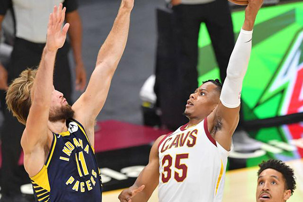 次节,萨博尼斯一记精彩的空接扣篮,加兰德一人轰进三球,奥斯曼连投再罚砍下4分,一阵乱战之后,骑士将比分以33-31反超。步行者将士立刻发动反击,一波7-0小高潮过后,重新夺回领先优势。奥斯曼的三分球打乱了对数进攻节奏,小南斯、马克等人也纷纷建功,3.5秒,奥斯曼左侧底角再中三分,半场战罢,骑士以49-45领先。