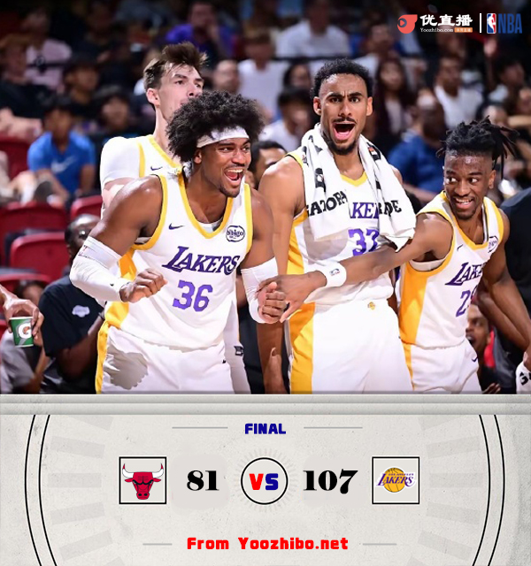 24直播网 7月21日讯 NBA夏季联赛,公牛今日对阵湖人,前者上场比赛战胜老鹰,后者则是取得两连胜。本场布朗尼和克内克特缺战。比赛上来,两队短暂拉锯后湖人突然发力,他们的进攻打得行云流水单节轰下39分,而公牛只拿到18分,次节湖人的命中率急剧下滑,得分也是未能上20分,不过公牛依旧低迷,半场结束时分差20分;下半场回来,湖人还是没能解决好进攻问题,公牛稍稍缩小分差,末节湖人重整旗鼓,一波10-0的小高潮直接将比赛悬念打没,最终湖人大胜公牛迎来三连胜。