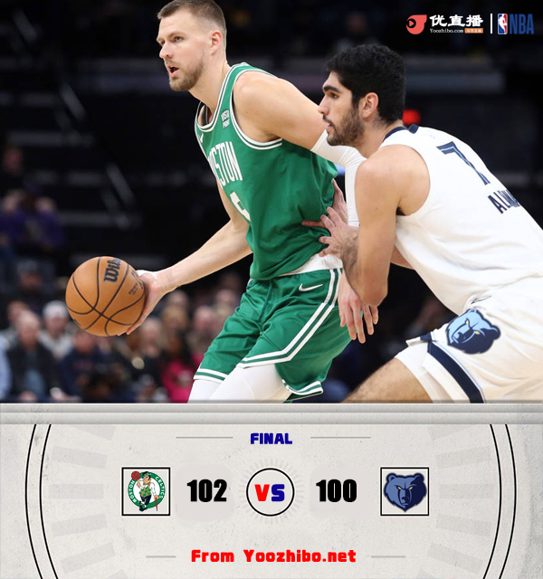 24直播网11月20日讯 NBA常规赛,凯尔特人客场挑战灰熊。比赛开始,双方势均力敌,贝恩外线开火连中三分,波津高效输出给出回应,次节凯尔特人不断冲击篮筐将取得两位数优势,灰熊内外开花顽强咬住,半场战罢凯尔特人56-53领先3分。易边再战,双方继续缠斗,比分咬得很紧,末节双方争夺陷入白热化,关键时刻波津致命封盖完成绝杀,凯尔特人102-100灰熊险胜过关。
