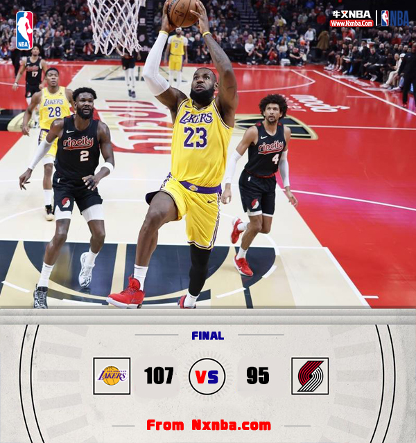 24直播网11月18日讯 NBA常规赛西部季中锦标赛,开拓者今日迎战湖人,前者正遭遇五连败情况不佳,后者上场比赛不敌国王,此役文森特、范德比尔特、西蒙斯、布罗格登和亨德森等多人缺战。比赛上来,湖人就率先进入状态打出8-2的开局取得领先,分差也是逐渐拉开到了两位数,首节末段到次节初段,开拓者发起凶猛反扑一度追至只差2分,但重新稳住阵脚的湖人及时给出回应,半场结束时分差为10分;下半场回来,开拓者发起凶猛反扑并将分差缩小到1分,但这次他们依旧未能实现反超,詹姆斯连续的三分扑灭了对手的势头,末节上来湖人一波7-0的小高潮没有再给对手机会,最终湖人轻取开拓者,送给后者六连败。