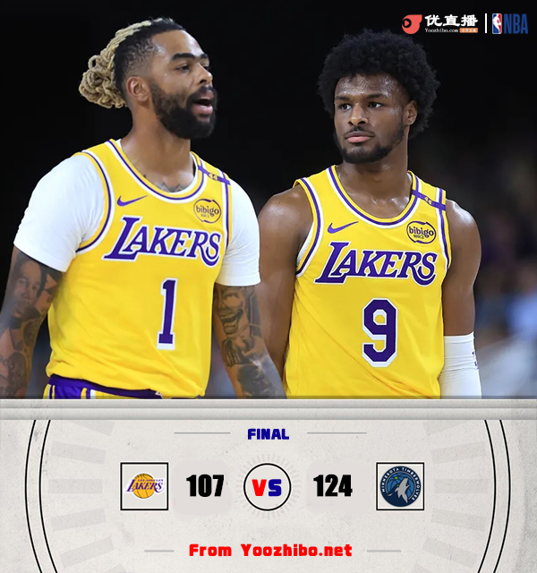 24直播网10月5日讯 NBA季前赛今日正式打响,湖人和森林狼迎来一场交手。湖人方面詹姆斯和浓眉哥都没有出场比赛,布朗尼则替补待命;森林狼方面爱德华兹和新援兰德尔都没有出战,迪文琴佐则进入首发。首节对决森林狼内外开花很快接管比赛,新援迪文琴佐迅速融入节中连续命中3记三分拿下11分,森林狼在后5分钟里送出20-10的攻势确立起两位数领先;次节湖人在拉锯战中依靠里夫斯最后连续三分送出13-2的攻势扭转局势追至9分进入下半场。休息归来森林狼在节中最多拿到16分的领先,不过湖人在后半段及时回暖回敬18-5的攻势追至1分重燃希望。但这之后湖人几次迫近比分但都没能实现逆转,而森林狼在末节连中三分轰出15-1的攻势重新拉开比分杀死胜局,布朗尼则在最后时刻取得进球拿到季前赛第一分。最终,森林狼击败湖人迎来季前赛的开门红。