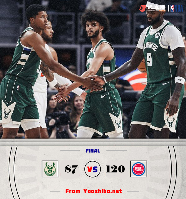 24直播网10月7日讯 NBA季前赛,雄鹿对阵活塞。比赛开始,雄鹿率先发力,利拉德高效输出率队很快取得两位数领先,次节活塞展开反击,多点开花缩小分差,雄鹿命中率下降,半场以58-60落后活塞2分。易边再战,活塞延续火力,连投带罚扩大领先优势,雄鹿进攻端没有起色,末节更是频频打铁失误,单节仅得到8分,活塞越战越勇不断拉开分差,最终,活塞120-87大胜雄鹿。