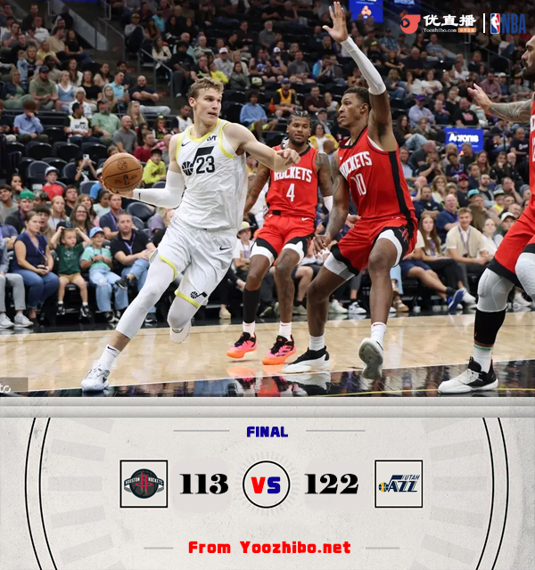 24直播网10月8日讯 NBA季前赛继续开打,火箭队迎来季前赛第一个对手爵士队。首节开局火箭立足防守迅速接管比赛,他们7分钟里仅丢2分,让爵士期间12投仅命中1球,出色的防守帮助球队取得15-2的攻势占据先机。次节爵士进攻端明显回暖不断蚕食比分,奈何后半段杰伦-格林突然爆发连续命中4记三分,他这一节独砍14分并帮助球队取得13分优势进入下半场。休息归来火箭攻防两端状态骤降,爵士在后半段轰出29-8的攻势一举反超比分,这之后双方逐渐换上替补开启练兵,而爵士也顶住了对手的猛攻。最终,爵士在最多落后19分的情况下逆转火箭拿下比赛。