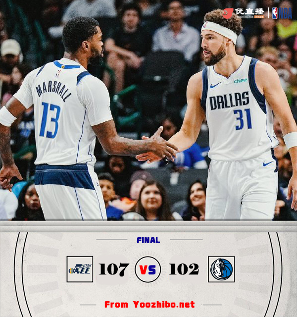 24直播网10月11日讯 NBA季前赛,爵士客场挑战独行侠,本场比赛克莱迎来首秀,东契奇继续缺阵。比赛开始,双方连续打铁很是慢热,克莱连续中远投不中还在找状态,乔治和克拉克森带领爵士接连扔进三分,独行侠进攻端还是一般,首节爵士领先7分,次节克莱终于三分开和并且单节命中3记三分,欧文也能突破内线取分,但爵士多点开花能拉大优势,半场爵士领先到13分。下半场,独行侠换上替补练兵,马尔卡宁接连外线发炮带领爵士主力一度扩大到近20分领先,随后双方接连反击上演暴扣盛宴,三节爵士继续领先12分,末节独行侠继续深度轮换,爵士依然全主力在场,爵士始终掌握住10分左右领先,最终爵士107-102力克独行侠。