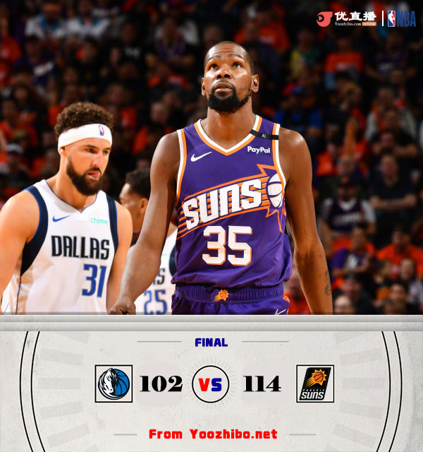 24直播网10月27日讯 NBA常规赛今日继续进行,太阳迎来赛季第一个主场比赛,对手则是西部劲敌独行侠;本场比赛比尔和阿伦缺席背靠背比赛。首节之争双方状态相当一路拉锯,独行侠这边东欧+克莱的进攻端组合依旧神勇,太阳则更加全面多点开花;次节杜兰特带领替补阵容打出一波11-2的攻势一举确立起两位数领先并奠定半场8分领先。休息归来独行侠依靠开局的10-2一度追至1分,但随后的拉锯战中还是奇差一招,太阳则回敬16-4的攻势拉开两位数分差重新掌控比赛。末节独行侠打得十分别扭分差一直在10分上下徘徊,最后时刻杜兰特和布克连续制造犯规命中罚球杀死比赛。最终,太阳主场击败独行侠拿下比赛。