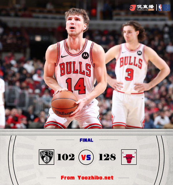公牛(9-13):拉文18分4助,菲利普斯5分5板,武切维奇21分10板3助,道苏姆16分6助,基迪20分13板11助,布泽里斯20分5板2毛,塔克11分4板,杰伦-史密斯8分5板,鲍尔5分3板2助。