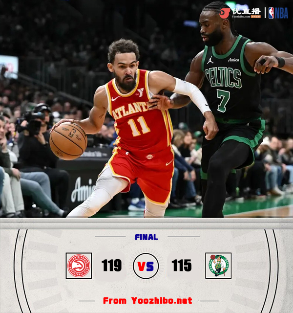 24直播网讯 北京时间1月19日讯 NBA今日继续开打,凯尔特人今日坐镇主场迎战老鹰。首节之争绿军早早进入状态,杰伦-布朗连砍9分帮助球队拿到19-9的完美开局,老鹰开局打得被动也直接导致随后一直被动追分;不过进入第二节双方剧本反转,首节打得被动的老鹰在开局轮换阶段送上15-6的攻势迅速追上比分,博格丹期间命中三分也将自己连续命中三分球场次扩大至111场;绿军方面则落入被动次节仅得15分并丢掉领先带着4分劣势进入下半场。休息归来老鹰状态如同过山车一般又开始回落,绿军则在落后9分的被动局面下送出18-4的攻势扭转局势;末节决胜时刻绿军虽然手握领先但优势不大埋下隐患,最后时刻塔图姆还投丢了关键罚球,特雷-杨则在随后两罚全中将比赛拖入加时。加时赛双方交替拿分几次互换领先,末段双方更是弹无虚发各种神仙球,不过最后时刻布朗先是被帽,随后又出现失误,老鹰则依靠奥孔武最后的进攻篮板罚球奠定胜局。最终,老鹰加时力克凯尔特人拿下比赛。