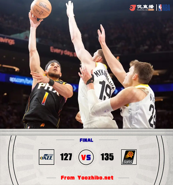 24直播网讯 北京时间2月8日讯 NBA常规赛,太阳主场迎战爵士。太阳3连败,以25胜25负排西部第9,爵士12胜37负西部倒数第2。比赛开始,布克高效输出,但爵士多点开花将分差拉开到两位数,次节太阳火力全开,布克里突外投连续得分,爵士命中率下降,太阳单节净胜10分,半场双方战成55平。易边再战,双方大打对攻,太阳火力更猛,布克手感滚烫第三节再拿10分,末节太阳占得先机将分差拉开到两位数,爵士奋力反击轰出13-0的攻击波扳平比分,双方争夺陷入白热化,关键时刻凯斯勒连续补篮拿分,科利尔压哨也有,阿伦三分绝平,将比赛拖入加时。加时赛,太阳连中三分轰出11-3的攻击波锁定胜局。最终,太阳135-127加时击败爵士,主场过关。