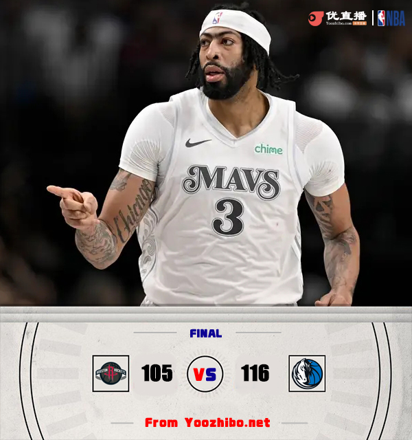 24直播网讯2月9日NBA常规赛,独行侠主场迎战火箭。独行侠27胜25负排西部第8,火箭近期5连败,32胜19负排西部第5。浓眉本场迎来首秀。一开场,浓眉制霸攻防,内外开花独得14分帮助球队取得两位数领先,杰伦-格林里突外投带队追赶,次节浓眉和丁威迪联手带出10-1的攻势一举将分差拉开到20分,杰伦-格林连续拿分苦苦支撑,半场战罢独行侠65-48领先火箭。下半场,火箭奋力反击轰出19-4的攻击波,独行侠连投带罚稳住局势,浓眉受伤返回更衣室,末节独行侠稳扎稳打保持优势,火箭苦苦追赶无果。最终,独行侠116-105击败火箭,送给对手6连败。